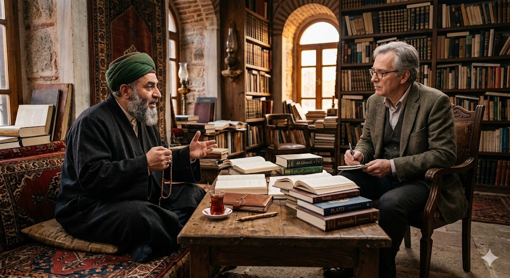 Cerita di atas, mungkin memesona sekaligus membingungkan, jika kita tidak memahami konteks pembicaraan mereka. Menurut pakar kajian Ibnu Arabi, Michel Chodkiewicz, konteks pembicaraan mereka itu adalah soal kebangkitan jasmani kelak setelah kiamat. Para filosof, dengan argumen-argumen tertentu, menolak kebangkitan jasmani, sementara para teolog meyakini akan hal itu.